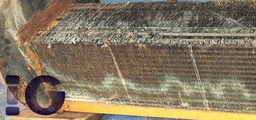 The structure of the inter cooler is fins and tubes of most centrifugal air compressor models, for example the IHI, Elliott, Cooper Cameron, Samsung, etc. The fins stacked and expanded tightly on the tubes to have the full contact, so that the heat of the hot air could be transferred by the cooling water in the tubes.
